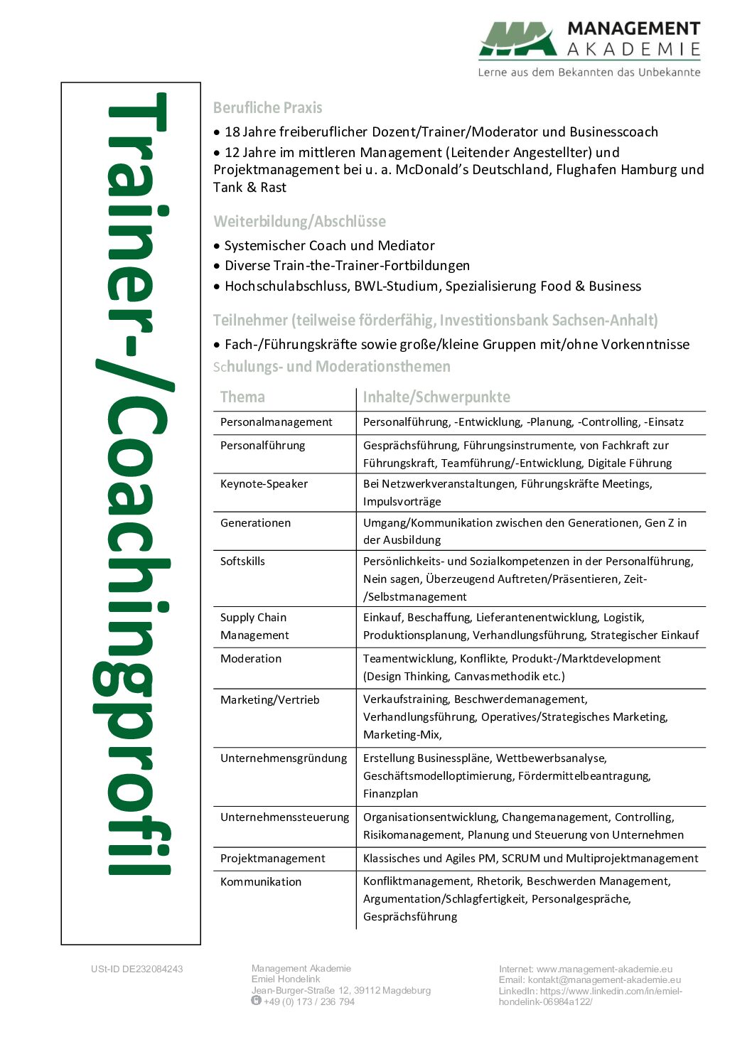 Inhaber und Dozent Management Akademie